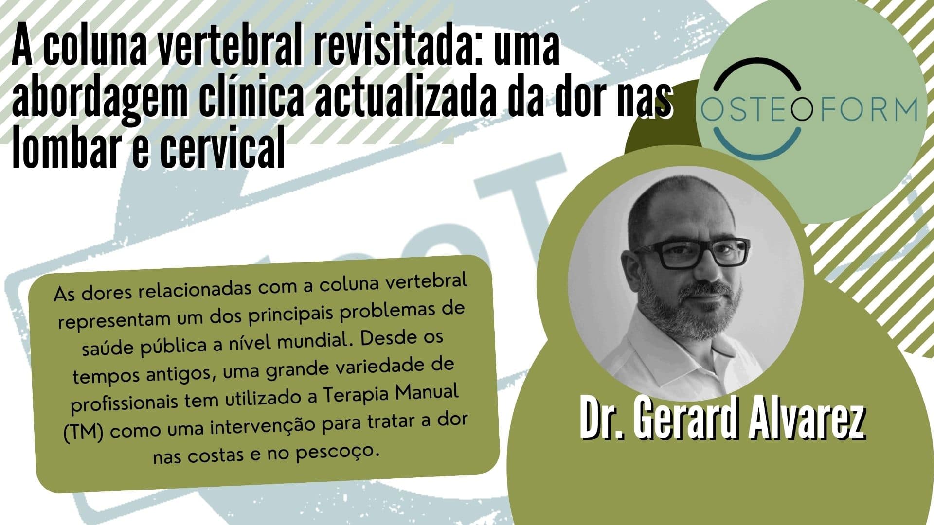 O Dr. Gerard Alvarez é um clínico, professor e investigador no domínio da Osteopatia e da Medicina Manual. Sediado em Barcelona, trabalha com pacientes que sofrem de dores músculo-esqueléticas, com especial incidência nas perturbações da coluna